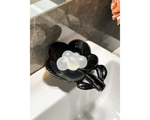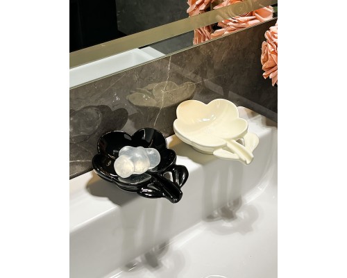 (奶油白+神秘黑)花朵皂碟 (NT392)