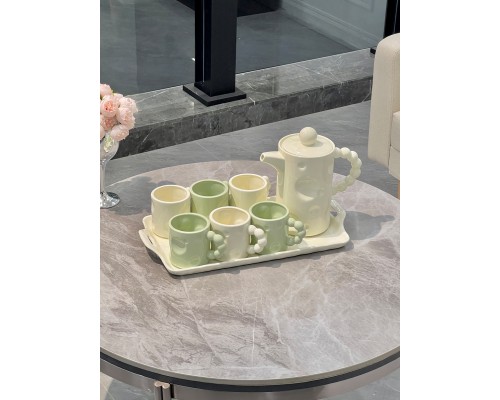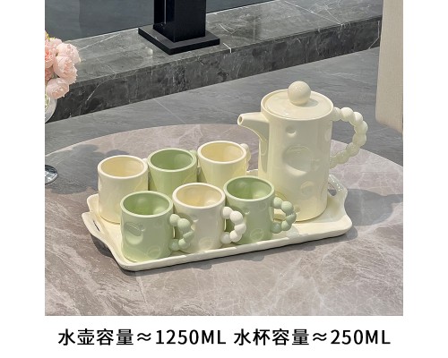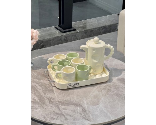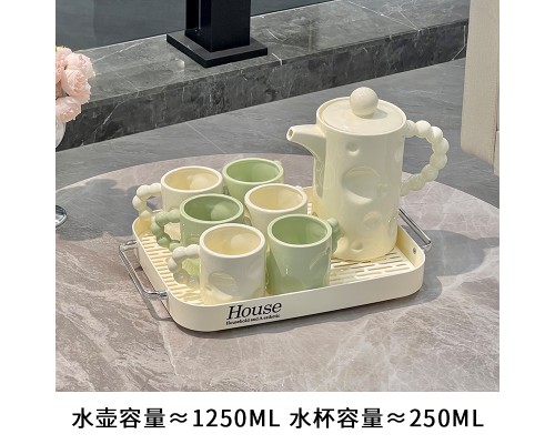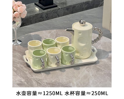 普包【銀把】混色6杯+壺+陶瓷托盤 (NT1,981)