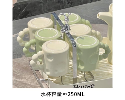 普包【純色把】混色6杯+壺+瀝水托盤+架子 (NT2,076)