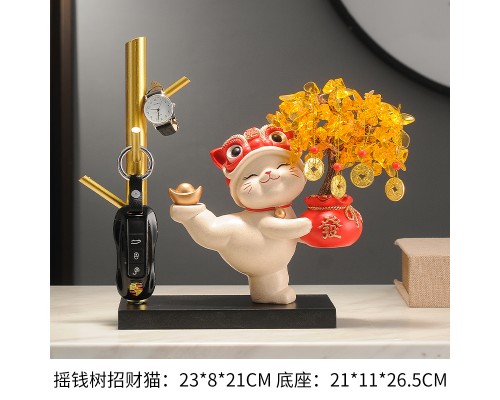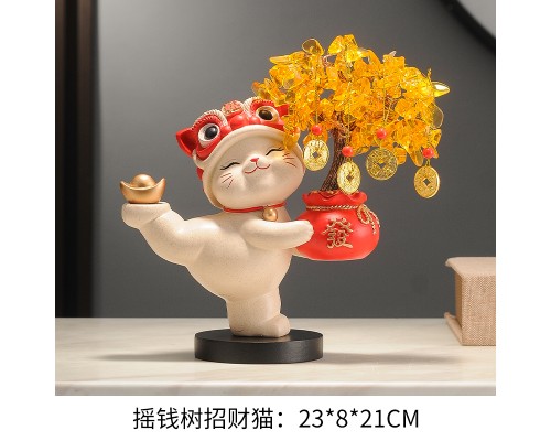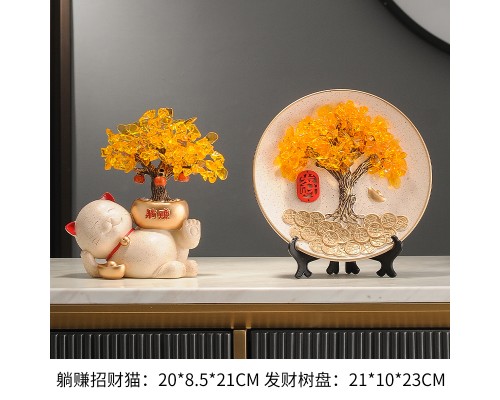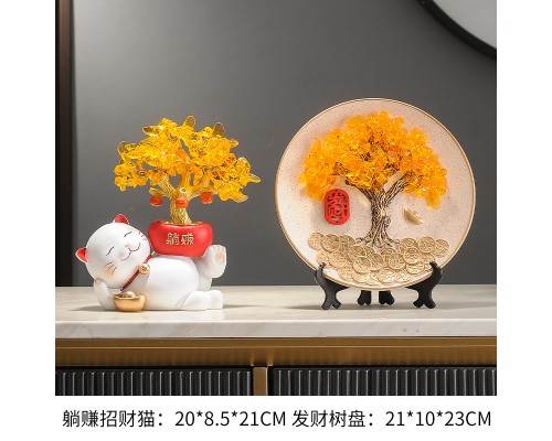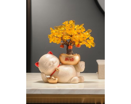 【米色】發財樹招財貓+樹杈底座 (NT1,305)