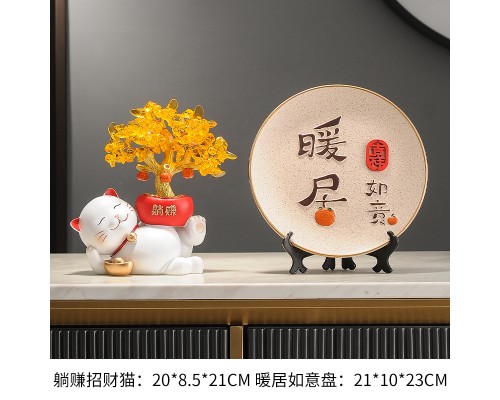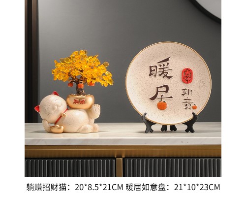 【米色】躺賺招財貓+墨色暖居盤 (NT1,333)