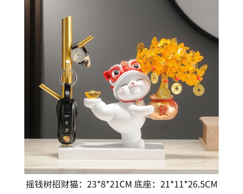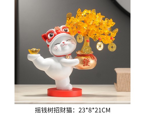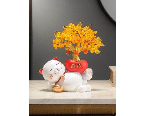 【白色】發財樹招財貓+樹杈底座 (NT1,305)
