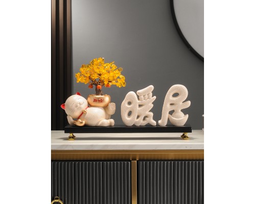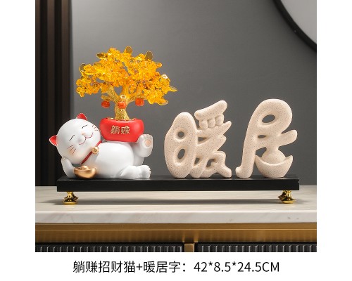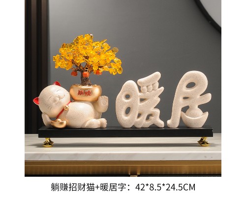【米色】躺賺招財貓+暖居字+底座 (NT1,485)