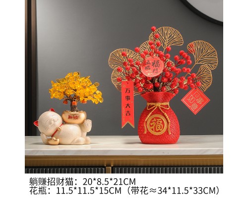 【米色】躺賺招財貓+福花瓶+底座 (NT1,580)