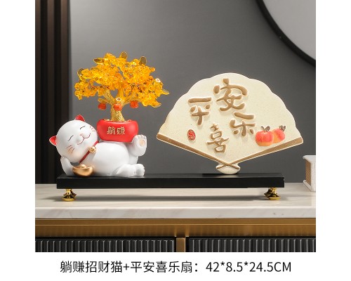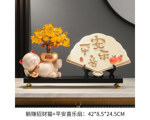 【米色】躺賺招財貓+平安喜樂扇+底座 (NT1,580)