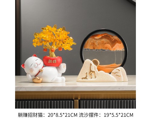 【米色】躺賺招財貓+流沙擺件 (NT1,333)