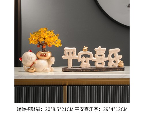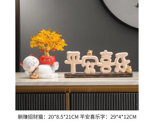 【米色】躺賺招財貓+平安喜樂字 (NT1,495)