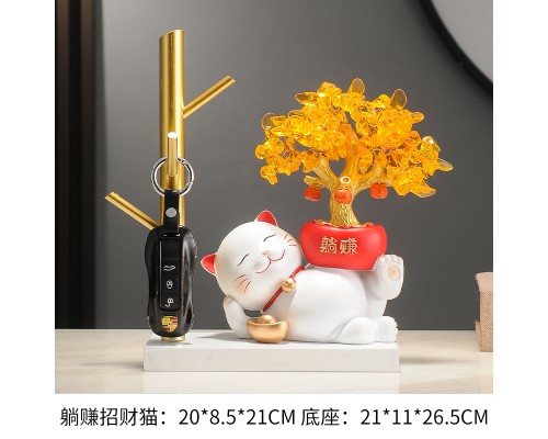 【白色】躺賺招財貓+樹杈底座 (NT1,238)