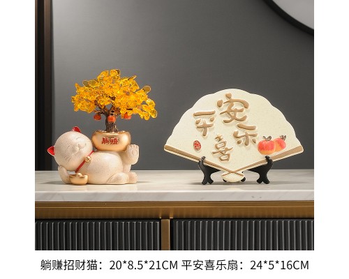 【米色】躺賺招財貓+平安喜樂扇 (NT1,333)