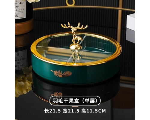 【旋轉 單綠】羽毛干果盒 (NT1,031)