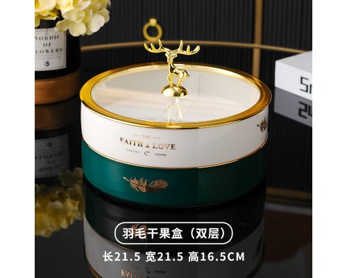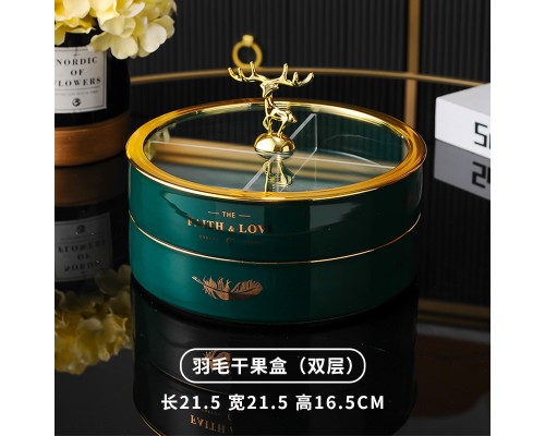 【旋轉 雙綠】羽毛干果盒 (NT1,601)