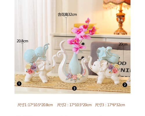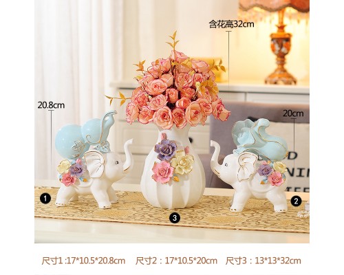 福祿百財象一對+美人瓶帶花 【送燙金墊】 (NT1,460)