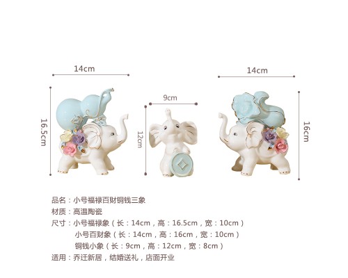 小號福祿百財如意三象 16.5cm高送燙金墊 (NT878)