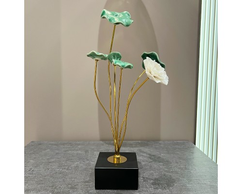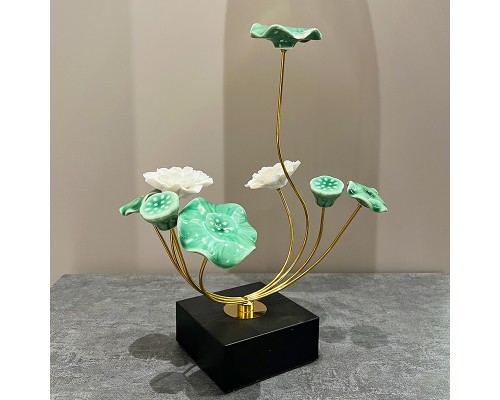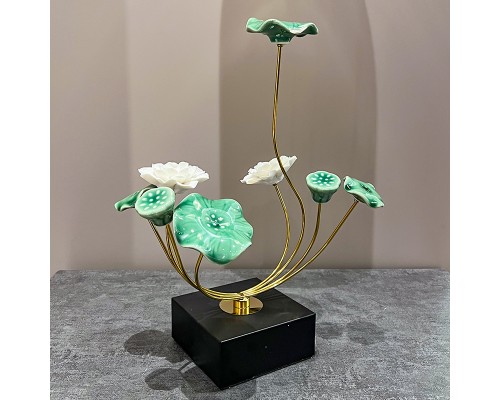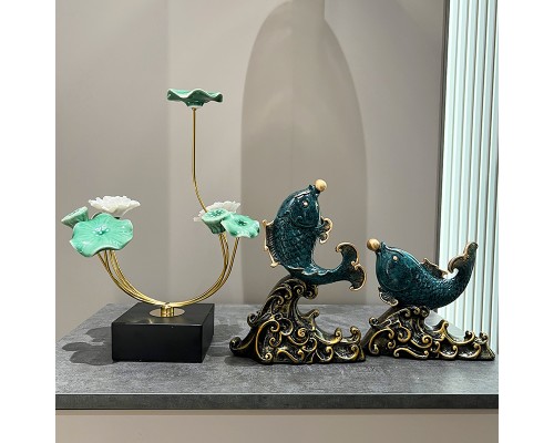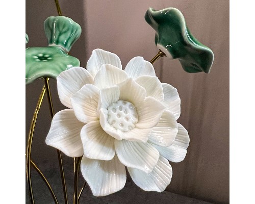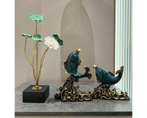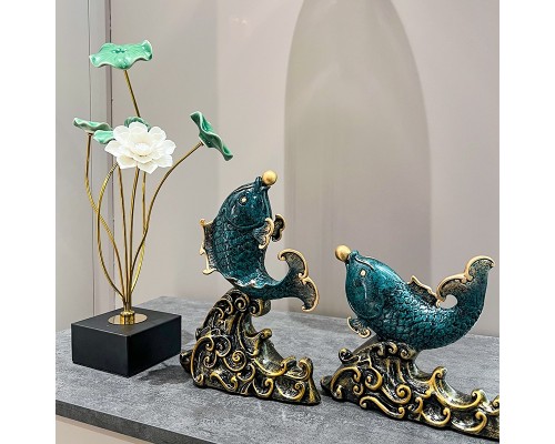 荷花仙鶴擺件客廳酒柜玄關禪意辦公桌博古架輕奢高檔家居裝飾品