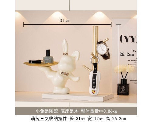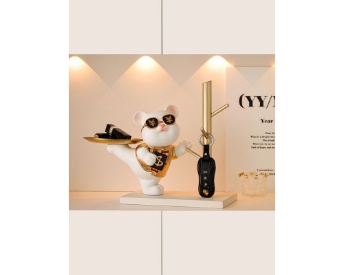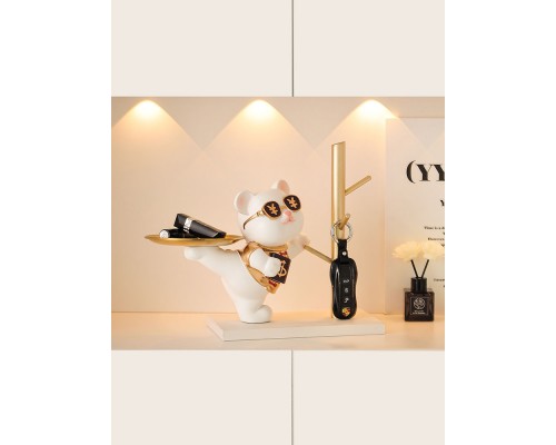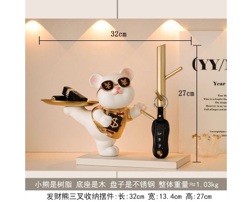 輕奢玄關鑰匙收納擺件入戶家居客廳托盤小熊置物架子喬遷新居禮品