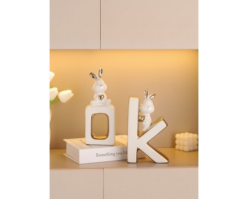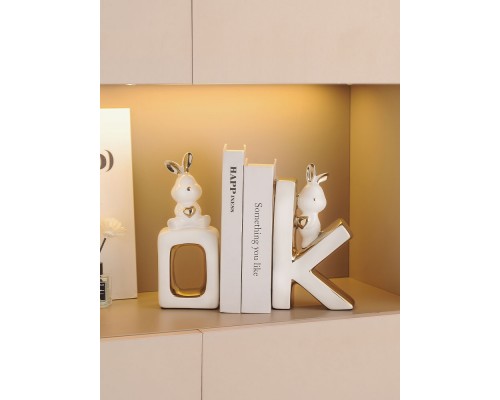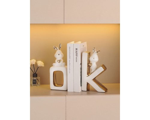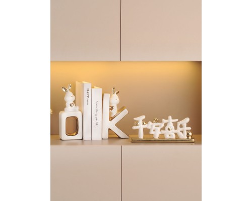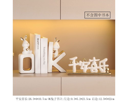 可愛兔子書擋擺件酒柜客廳玄關書柜陶瓷桌面書立家居裝飾喬遷禮物