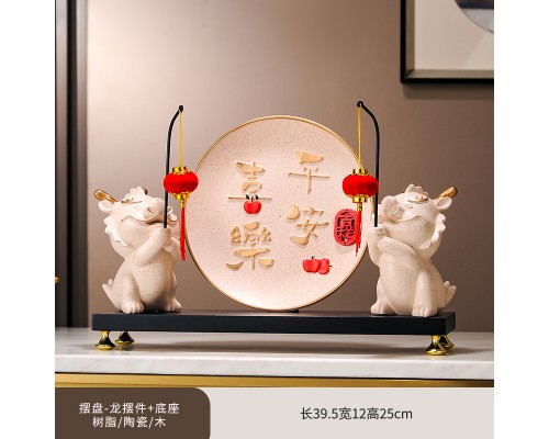 平安喜樂裝飾盤+對聯龍擺件 (NT1,342)