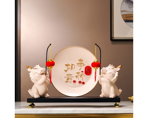 暖居裝飾盤+對聯龍擺件 (NT1,342)