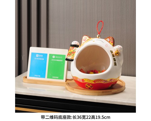 創意招財貓擺件開業禮品店鋪開張收銀臺二維碼裝飾發財貓自動招手