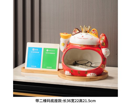 皇冠招財貓收納擺件【紅】+語音播報 (NT1,252)