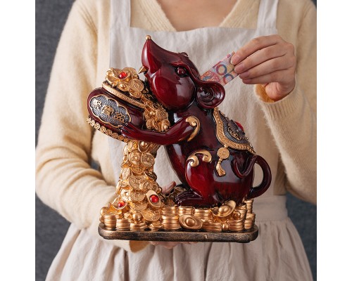 紅木色老鼠存錢罐