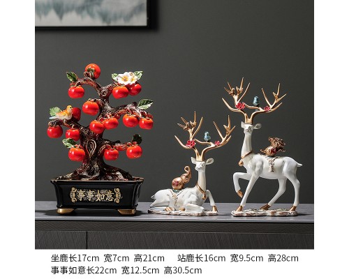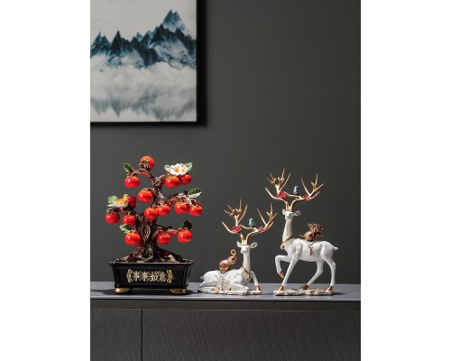 盆栽柿子樹+米白色云鹿 (NT2,040)