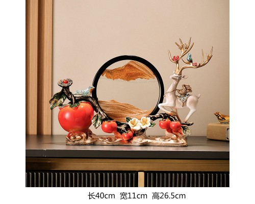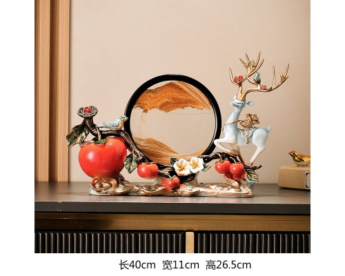 米白色一鹿相伴柿柿如意【橙流沙】