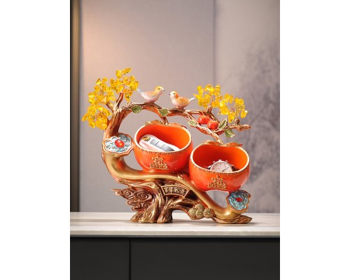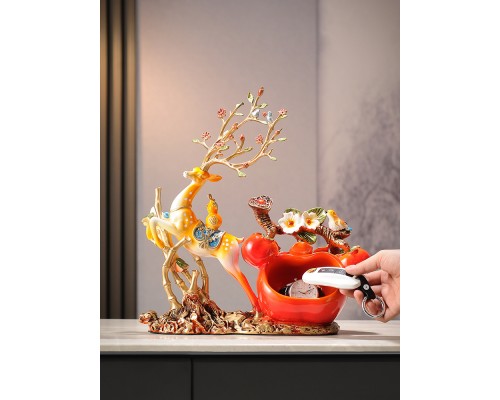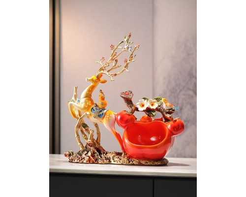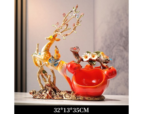 橙色節節高升招財鹿收納擺件