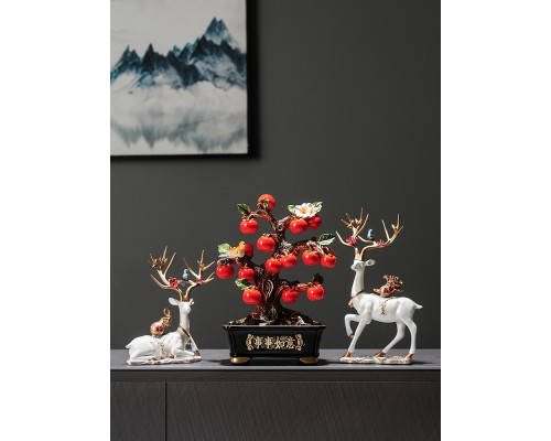 盆栽柿子樹+米白色云鹿 (NT2,040)