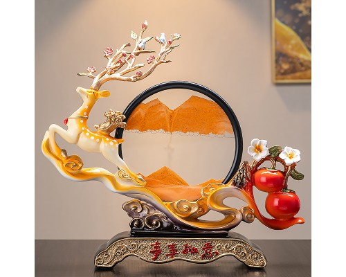 一鹿相伴山水流沙畫燈光款(插電/干電池)