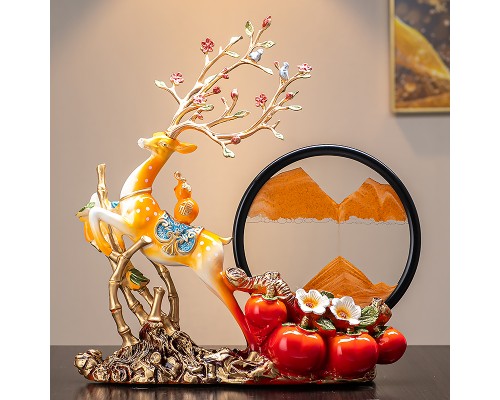 一鹿相伴(喜鹿+黃沙流沙燈畫)白色 (NT1,338)
