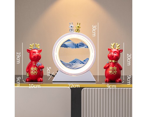 一鹿相伴(喜鹿+藍色流沙畫燈畫)紅色 (NT1,338)