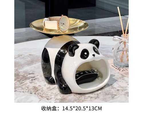 創意熊貓玄關入戶進門口鑰匙收納紙巾盒擺件客廳鞋柜喬遷新居禮物