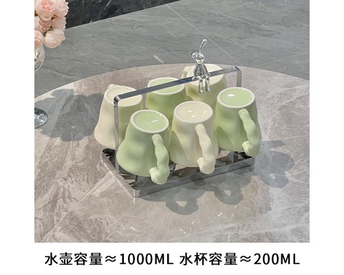 普包【純色把】混色6杯+壺+瀝水托盤+架子 (NT2,076)