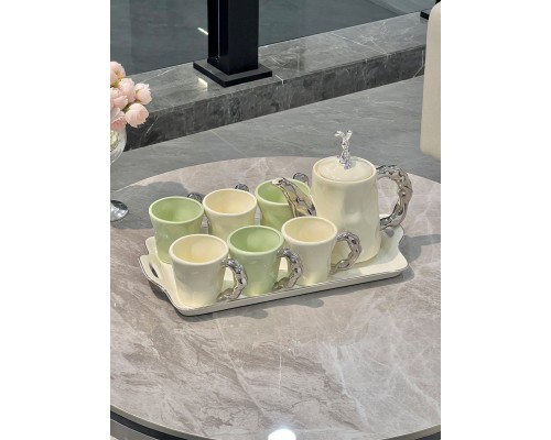 普包【銀把】混色6杯+壺+陶瓷托盤 (NT1,981)