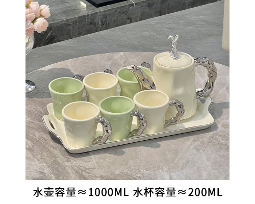 陶瓷高級感冷水壺水杯家用套裝大容量輕奢茶壺涼水壺喝水待客水具