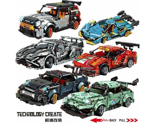 中國積木積速改裝回力賽車模型拼插玩具跑車1:24GTR超跑IE兼培訓