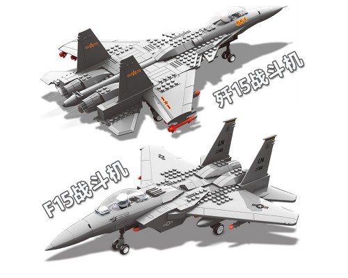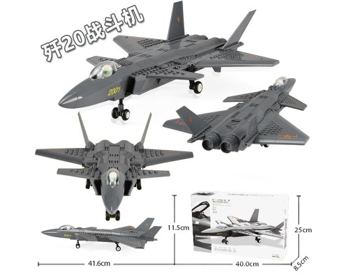 中國積木飛機系列殲20殲15武裝直升戰斗機軍事拼裝模型男孩子玩具