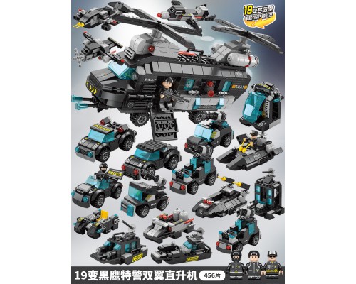 19變黑鷹特警雙翼直升機 送3人仔 (NT301)
