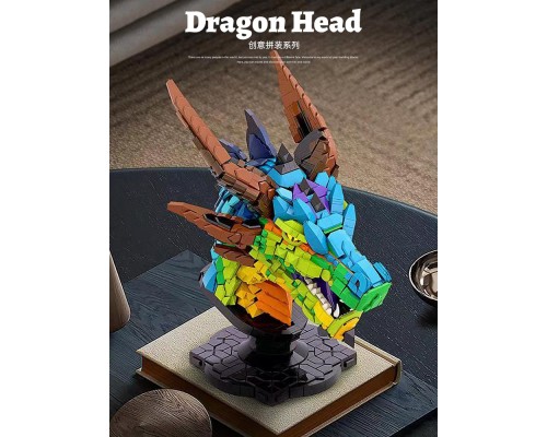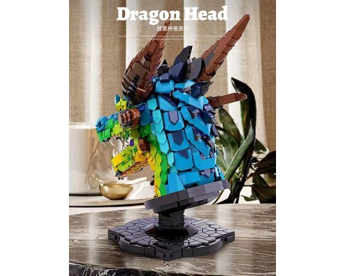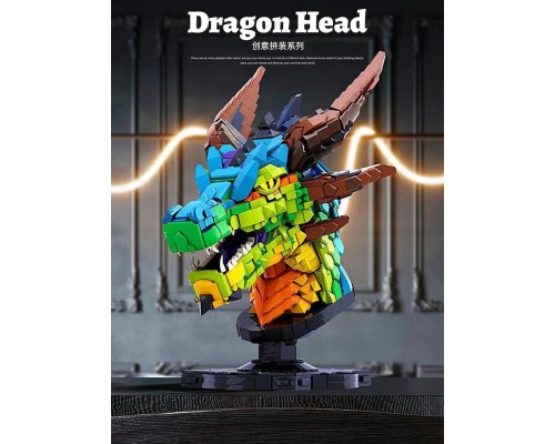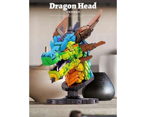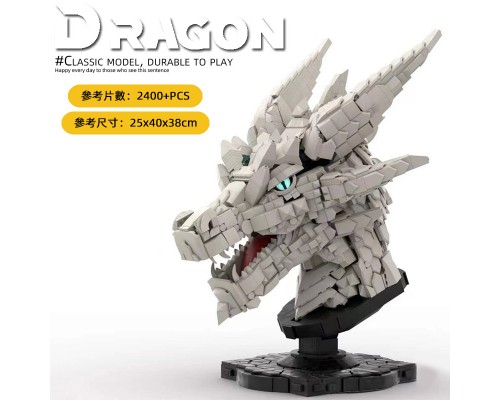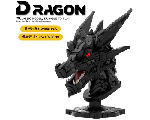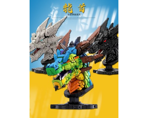 中國龍彩色龍頭積木黑色龍首男孩拼搭模型十二生肖白龍炎龍虎首MO
