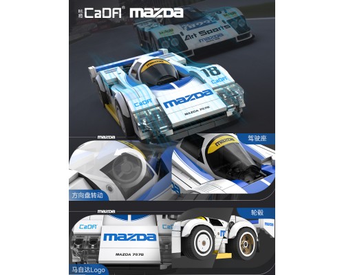 雙鷹cada咔搭中國積木馬自達八格車勒芒賽車拼裝跑車模型擺件