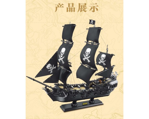中國積木1:10加勒比海盜安妮女王黑珍珠號船拼裝積木玩具模型