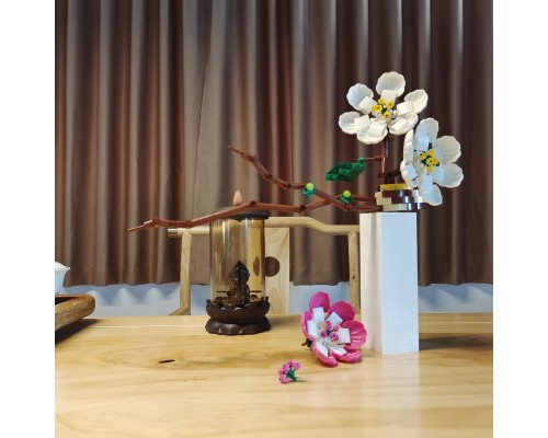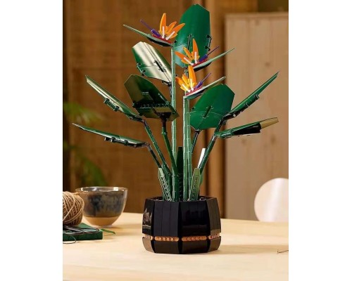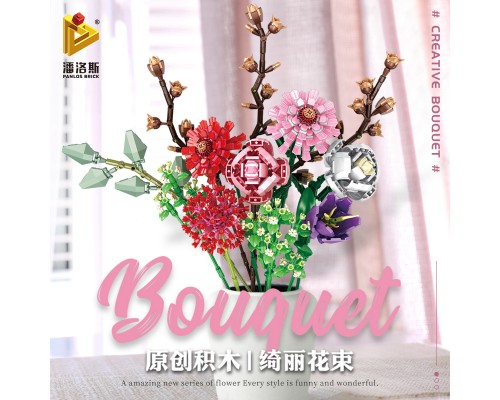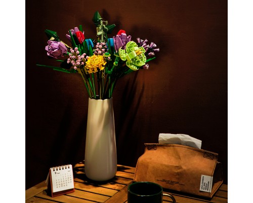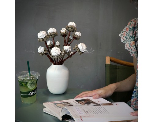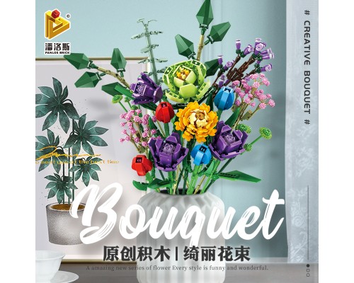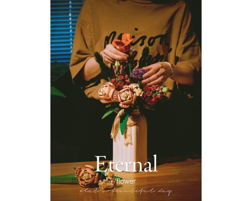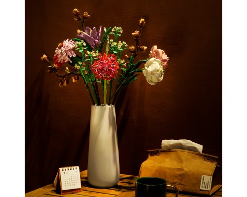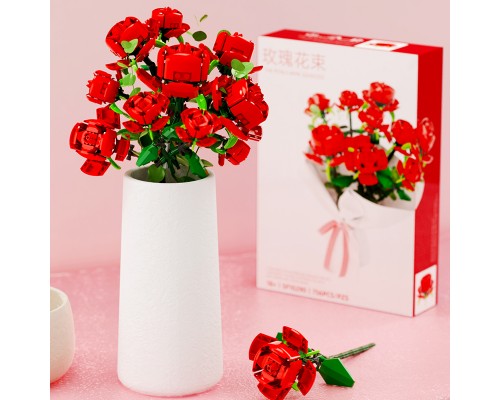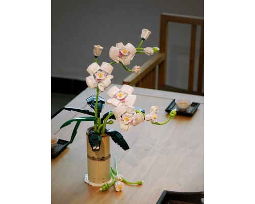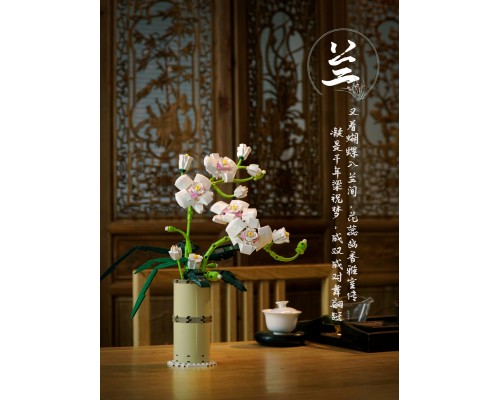 中國積木永生花束玫瑰蝴蝶蘭插花擺件高難度拼裝積木玩具模型