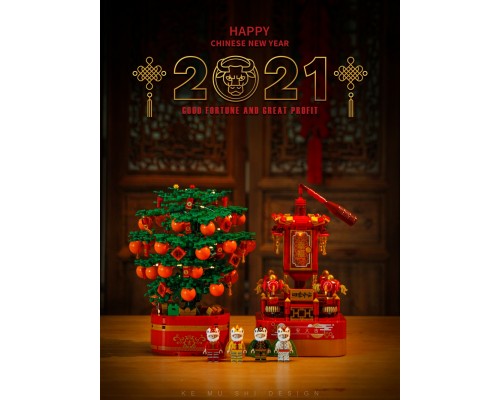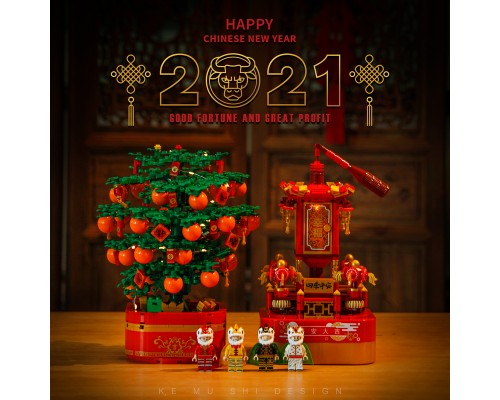 新年春節裝飾布置元宵燈八音樂盒精品小禮品拼裝積木玩具