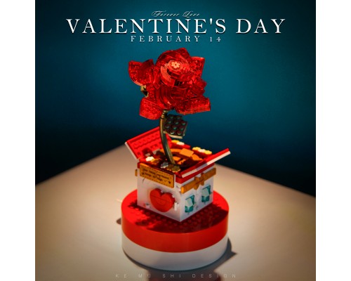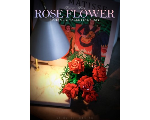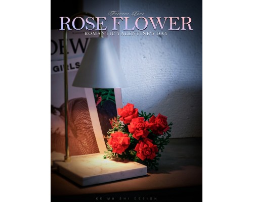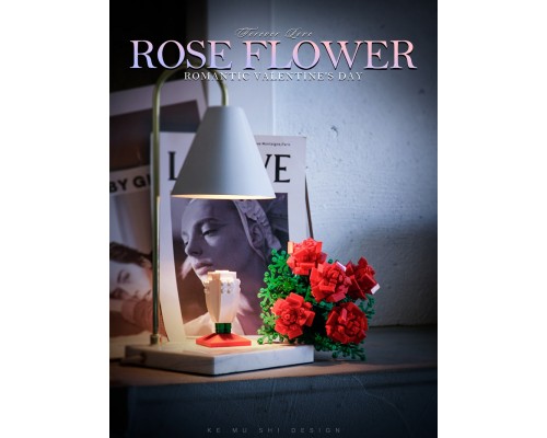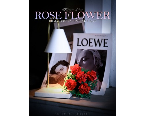中國積木花束永生花玫瑰情人節表白求婚禮物高難度拼裝積木玩具