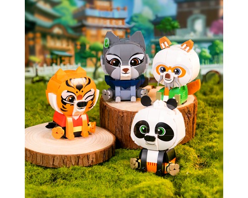 【拼奇積木】拼奇新春功夫熊貓4坐坐人仔方頭拼搭積木玩具擺件