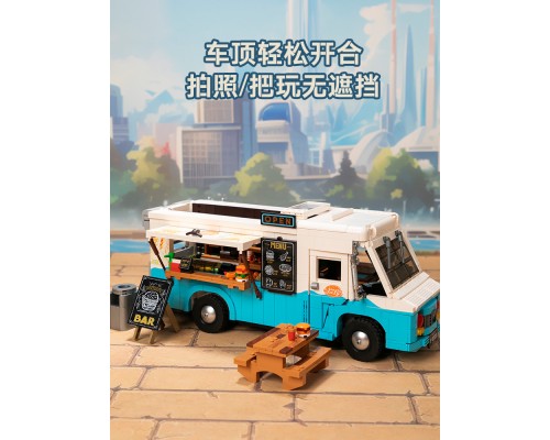 【拼奇積木】拼奇懷舊快餐車造型益智拼搭辦公室桌面擺件積木玩具
