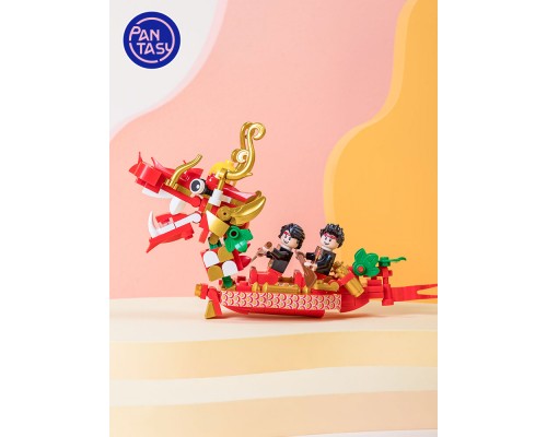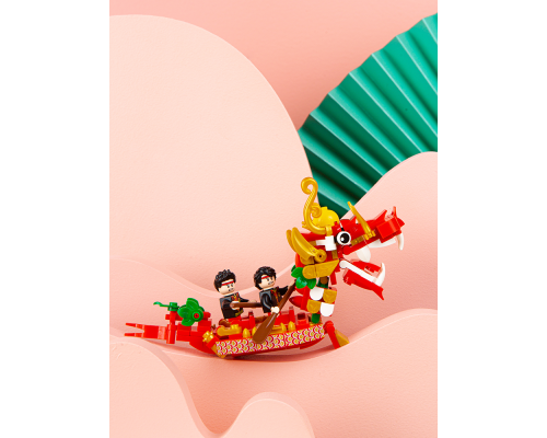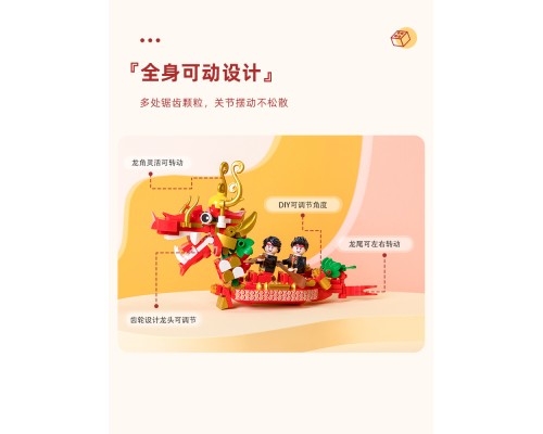 拼奇積木拼裝益智中國風龍船小龍舟積木模型玩具擺件