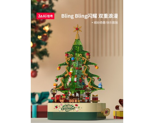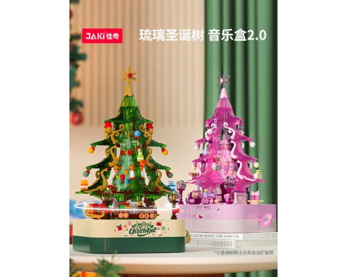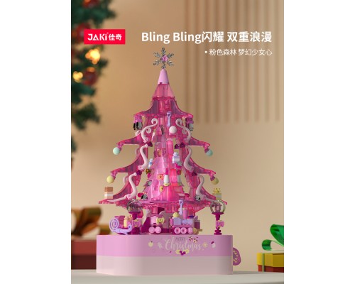 JAKI佳奇積木圣誕樹音樂盒粉色禮物品男女益智拼裝玩具擺件送閨蜜