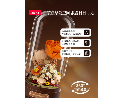 JAKI佳奇積木永生花音樂盒玫瑰花八音七夕情人節送女朋友老婆禮物